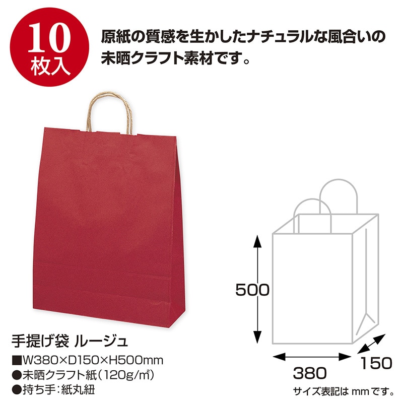 ササガワ 手提げ紙袋 ルージュ 特大 10枚 50-6406 1包(ご注文単位1包)【直送品】