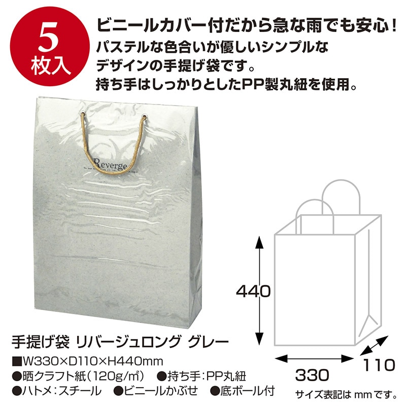 ササガワ 手提げ紙袋 リバージュロング グレー 50-6629 1枚(ご注文単位5枚)【直送品】