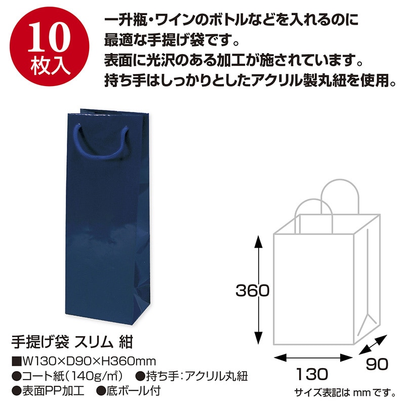 ササガワ 手提げ紙袋 スリム 紺 50-6832 1枚(ご注文単位10枚)【直送品】