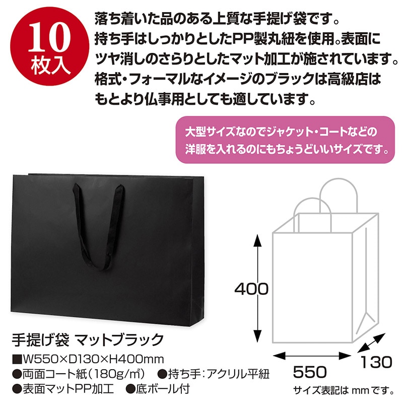 ササガワ 手提げ紙袋 マットブラック Y-55 H-40 50-6921 1枚(ご注文単位10枚)【直送品】