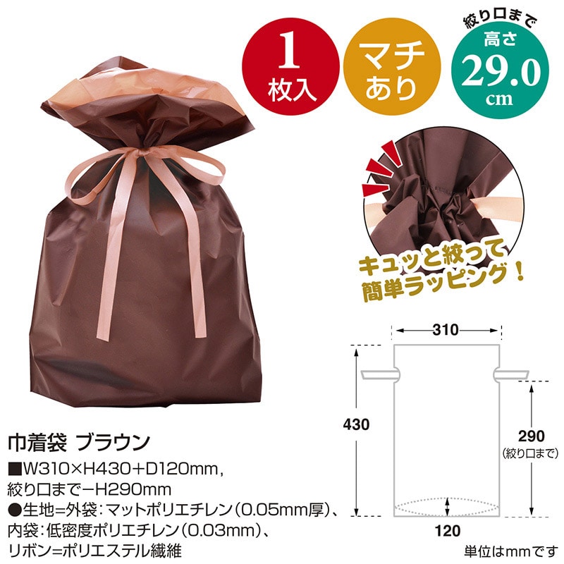ササガワ 巾着袋 ブラウン 310×430+120mm 50-4561 1枚(ご注文単位5枚)【直送品】