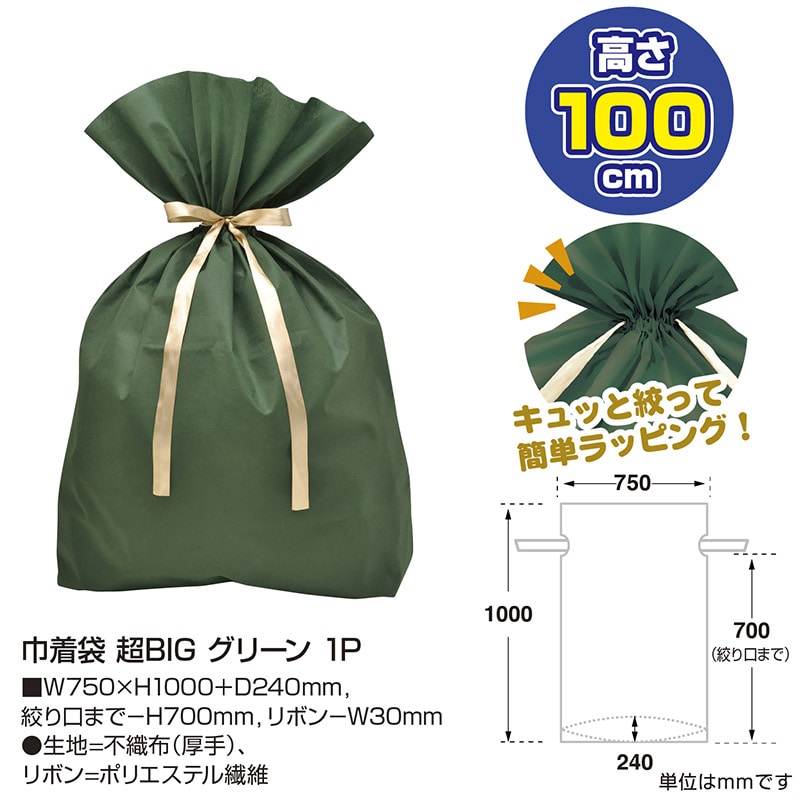 ササガワ 巾着袋 ソフトバッグ 超BIG グリーン 1枚 50-3952 1枚(ご注文単位5枚)【直送品】
