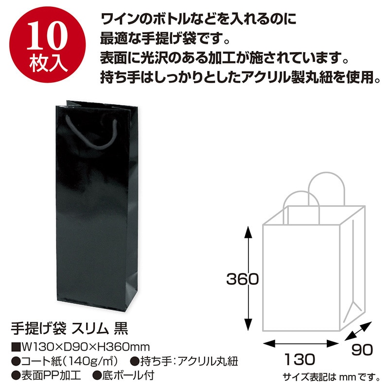 ササガワ 手提げ紙袋 スリム 黒 10枚 50-6933 1袋(ご注文単位1袋)【直送品】