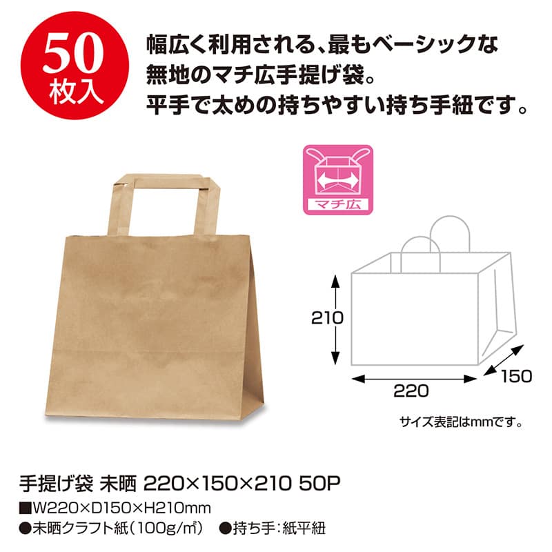 ササガワ 手提げ袋 未晒 220×150×210mm 50枚入 50-5521 1包(ご注文単位1包)【直送品】