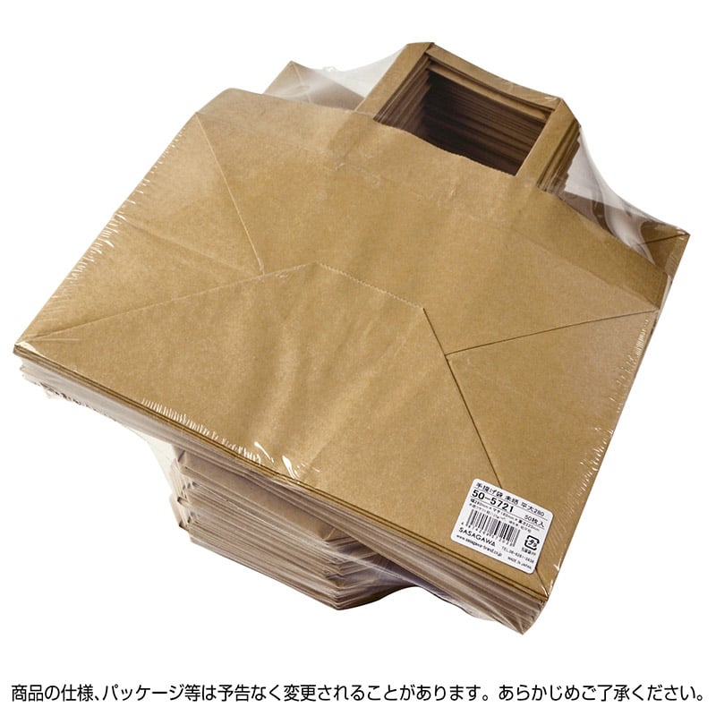 ササガワ 手提げ袋 未晒 280×180×220mm 50枚入 50-5721 1包(ご注文単位1包)【直送品】