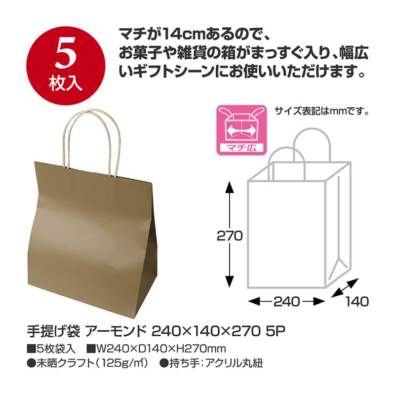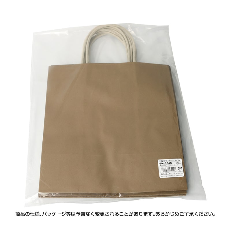 ササガワ 手提げ袋 アーモンド 240×140×270mm 5枚入 50-6043 1外袋/袋(ご注文単位1袋)【直送品】