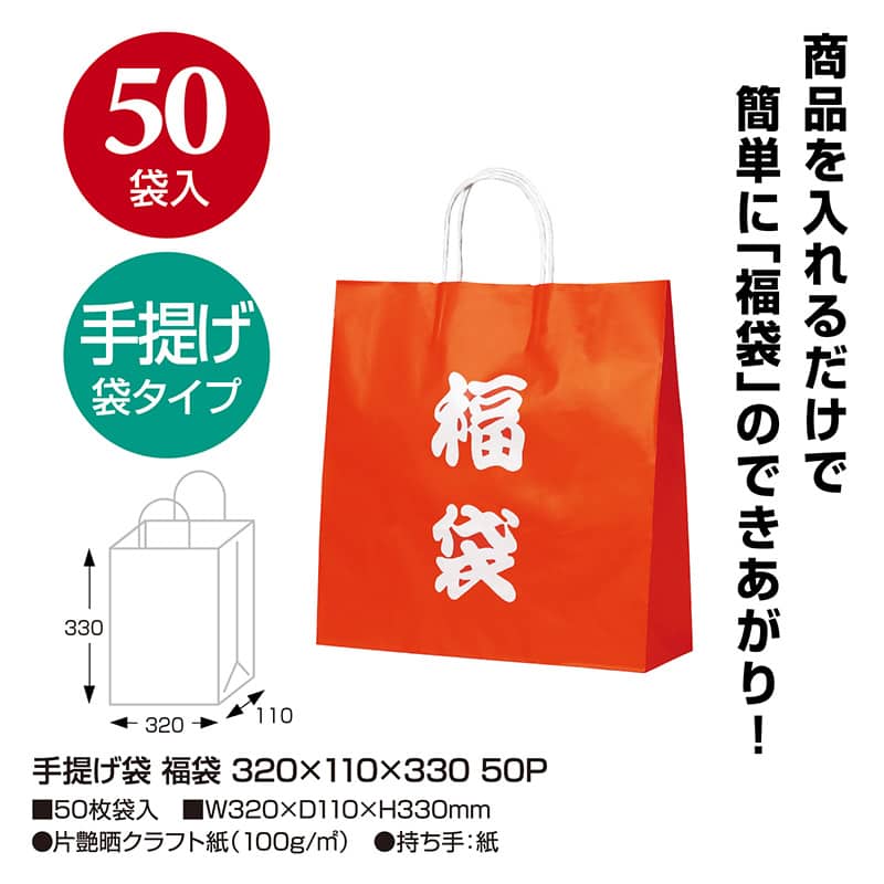 ササガワ 手提げ袋 福袋 320×110×330mm 50枚入 50-5343 1外袋/袋(ご注文単位1袋)【直送品】
