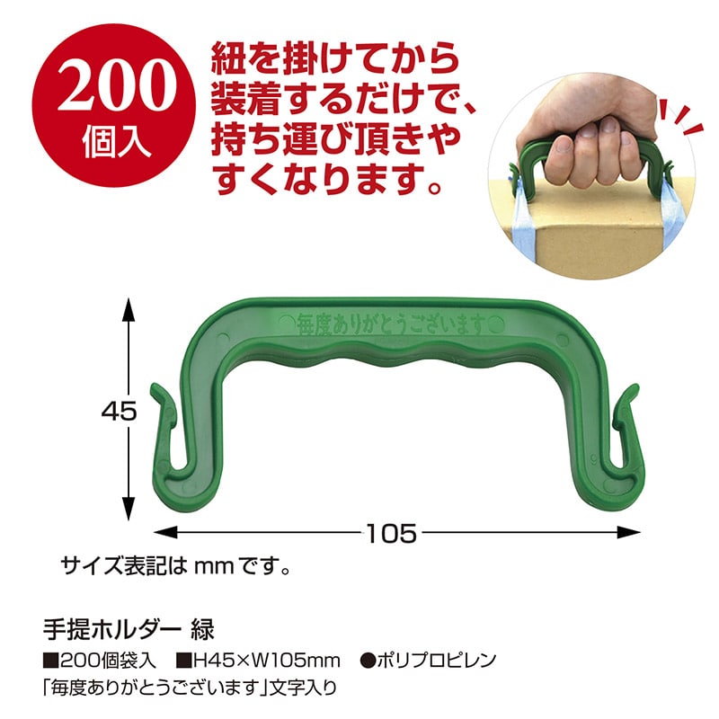 梱包品のロープに掛けるだけで、持ち運びが楽になる便利アイテム。「毎度ありがとうございます」文字入り。●入数:200個
