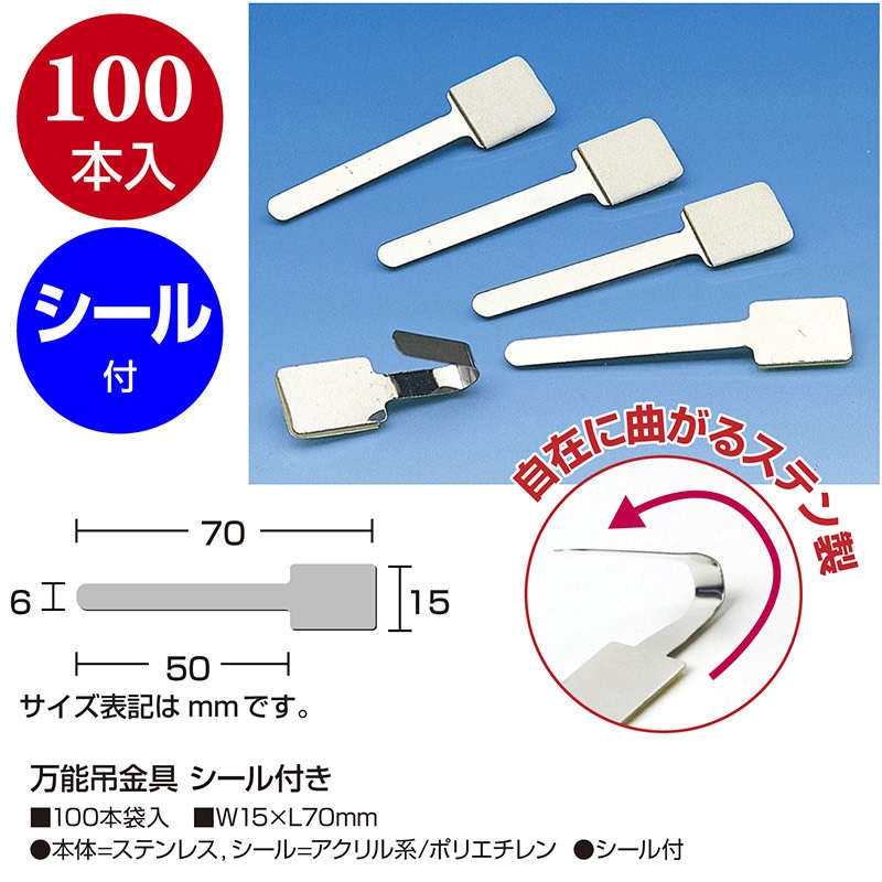 ササガワ 万能吊金具 シール付き 37-2003 100本 1袋(ご注文単位1袋)【直送品】