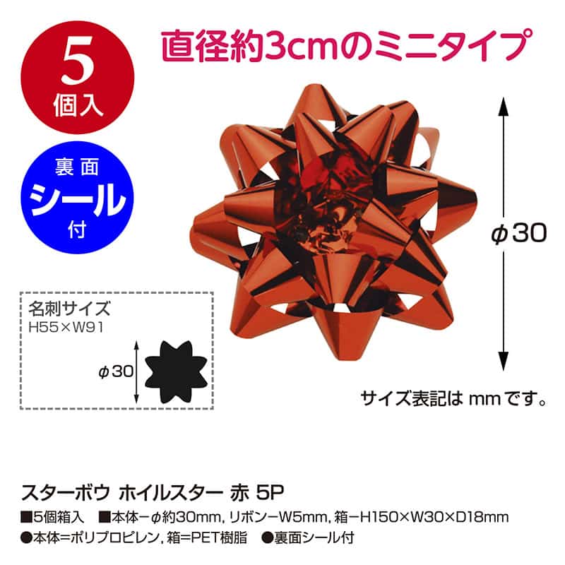 ササガワ スターボウ ホイルスター 赤 5個入 35-6857 1パック(ご注文単位5パック)【直送品】