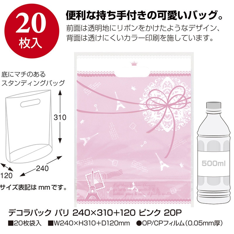 ササガワ デコラパック パリ 240×310+120mm ピンク 35-4063 20枚 1包(ご注文単位1包)【直送品】
