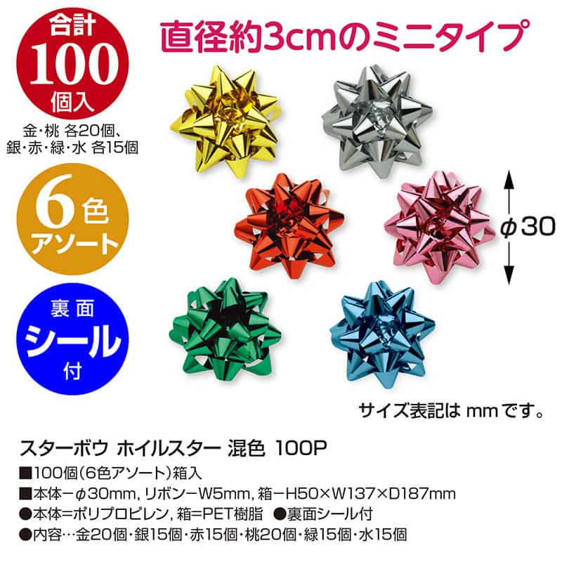 ササガワ スターボウ ホイルスター 混色 100個入 35-6768 1パック(ご注文単位1パック)【直送品】