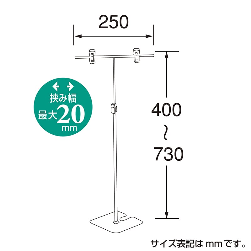 H44.5~69cm クリップ幅:8cm ベース:13.5cm角