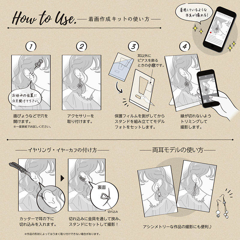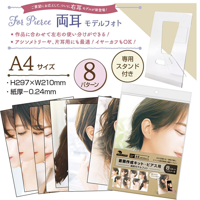 ササガワ 着画作成キット 両耳モデルフォト ピアス 37-5015 8枚 1セット(ご注文単位1セット)【直送品】