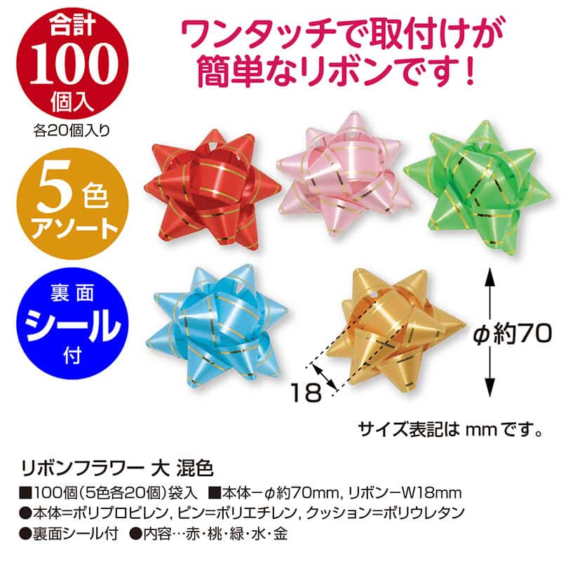 ササガワ リボンフラワー 大 混色 100個入 38-2501 1パック(ご注文単位1パック)【直送品】