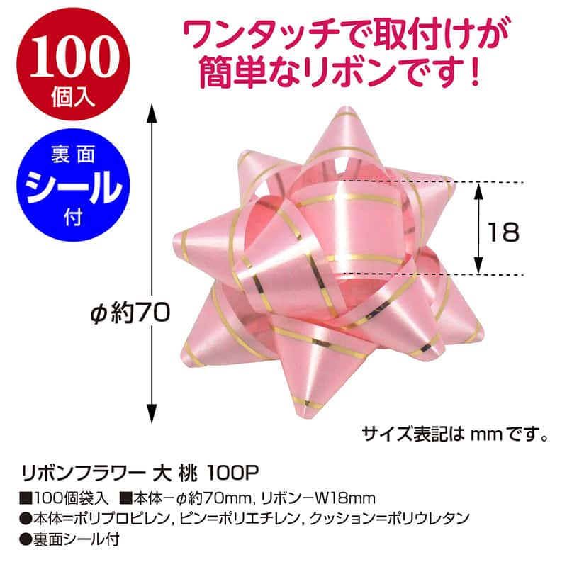 ササガワ リボンフラワー 大 桃 100個入 38-2521 1パック(ご注文単位1パック)【直送品】