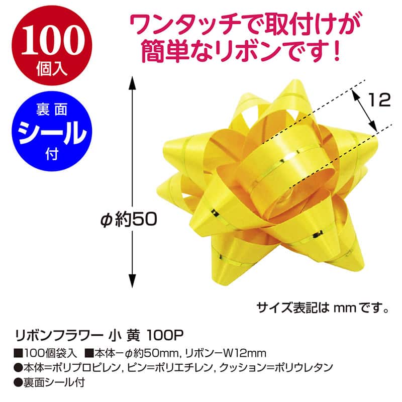 ササガワ リボンフラワー 小 黄 100個入 38-2550 1パック(ご注文単位1パック)【直送品】
