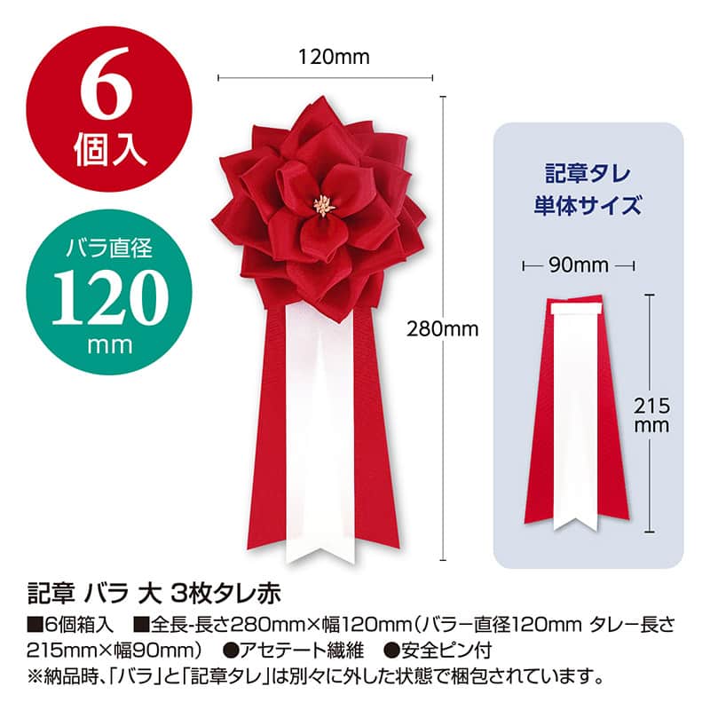 ササガワ 記章 リボンバラ 特大 赤 38-310 6個 1箱(ご注文単位1箱)【直送品】