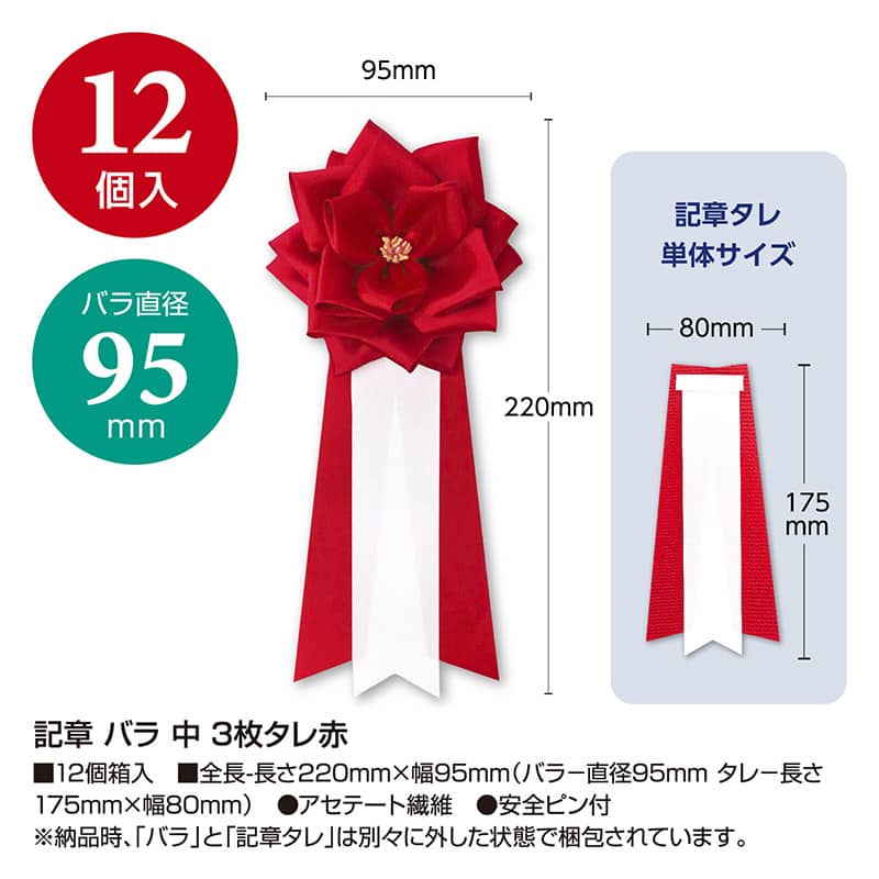 ササガワ 記章 リボンバラ 中 赤 38-330 12個 1箱(ご注文単位1箱)【直送品】