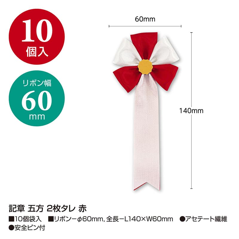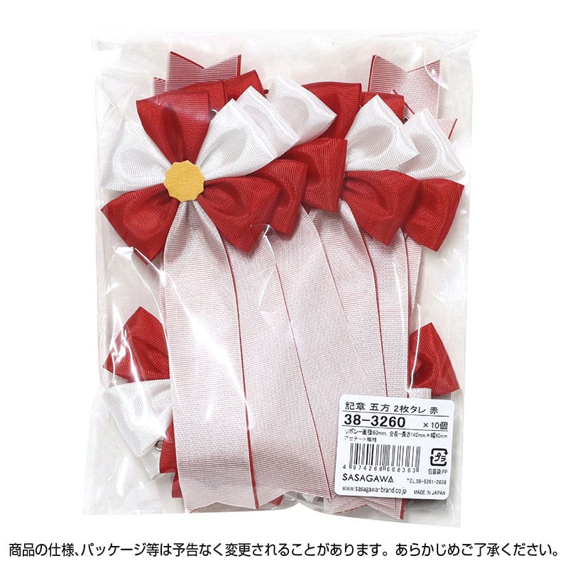 ササガワ 記章 五方 2枚タレ 赤 38-3260 1個(ご注文単位10個)【直送品】