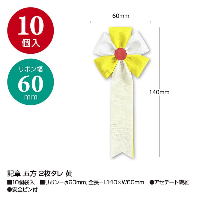 ササガワ 記章 五方 2枚タレ 黄 38-3264 1個(ご注文単位10個)【直送品】