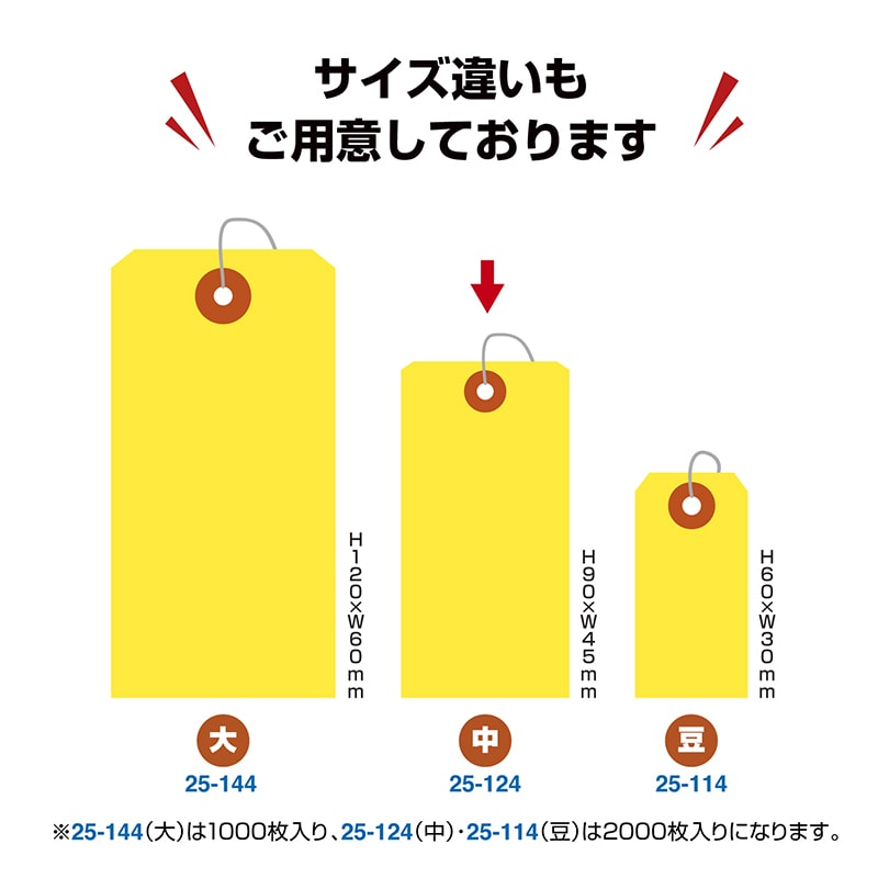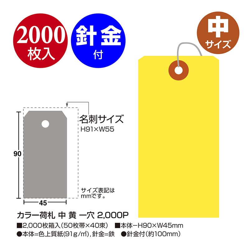 ササガワ カラー荷札 中 黄 一穴 25-124 2000枚 1箱(ご注文単位1箱)【直送品】
