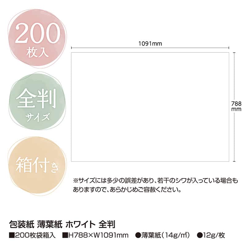 HEIKO 緩衝材 カラー薄葉紙 全判 白 200枚/袋