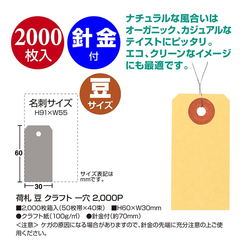 ササガワ 荷札 豆 クラフト 一穴 25-6110 2000枚 1箱(ご注文単位1箱)【直送品】