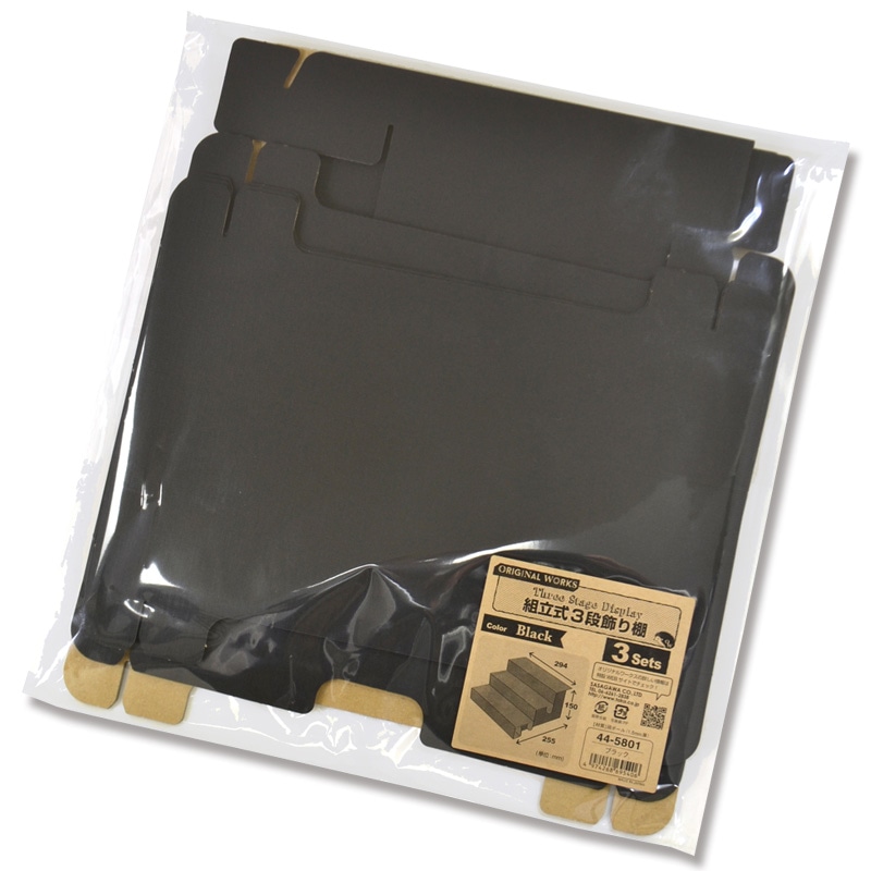 ササガワ 3段飾り棚 3個袋入 44-5801 3段飾り棚ブラック組立式 1セット(ご注文単位1セット)【直送品】