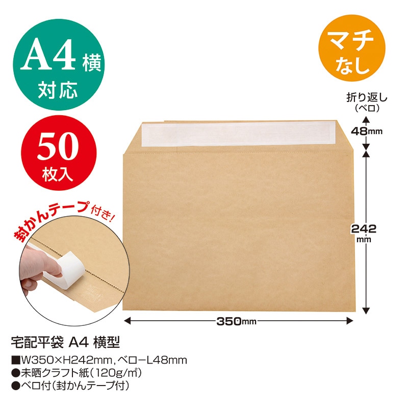 ササガワ 宅配平袋 A4 横型 50枚 32-1433 1包(ご注文単位1包)【直送品】