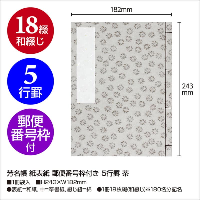 ササガワ 芳名帳 紙表紙 郵便番号枠付き 5行罫 茶 31-143 1冊(ご注文単位1冊)【直送品】