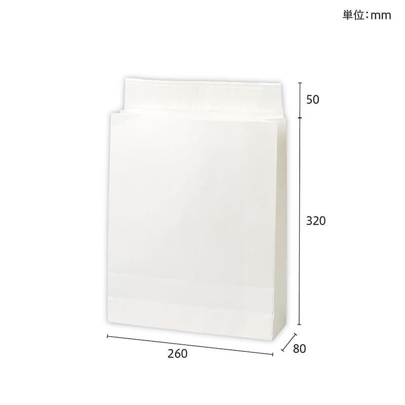 幅260mm×マチ80mm×高さ320mm/ベロ:長さ50mm