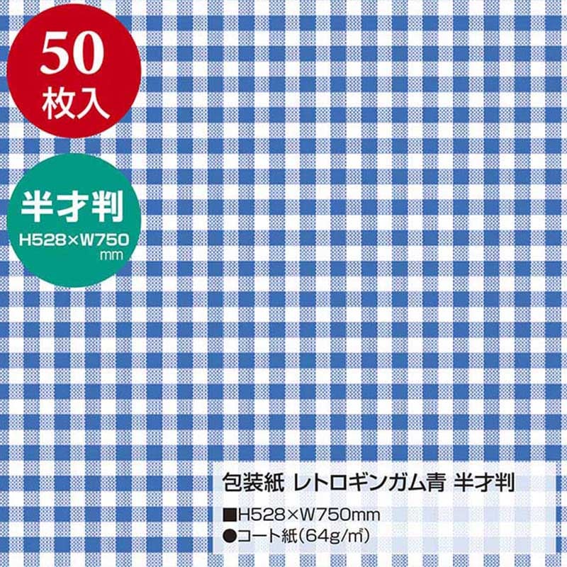 ササガワ 包装紙 半才判 レトロギンガム青 50枚 49-1155 1包(ご注文単位1包)【直送品】