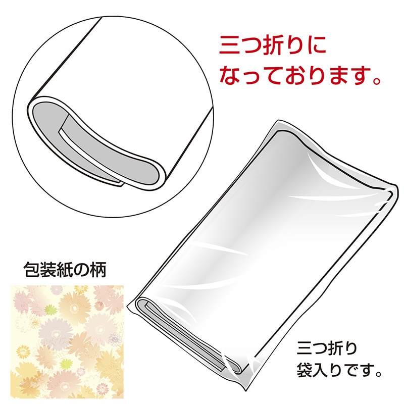 ガーベラのシルエットを重ね、かわいらしくデザインした花柄の包装紙です。この包装紙タレイア半才判は温かみのあるクリーム地を基調としています。お祝い事などの色々なシーンでご利用できます。サイズは縦528mm×横750mmで、コピー用紙と同じ紙質の光沢がない上質紙を使用し、簡単でかわいい包み方ができます。ササガワホームページ内の「レッツラッピング」サイトではおしゃれなリボンやシールなどと組み合わせたオリジナルのラッピング方法などを掲載しております。包装に必要な目安サイズを調べる「包装紙の大きさチェッカー」もあります。1包50枚入りの三つ折り仕立てです。