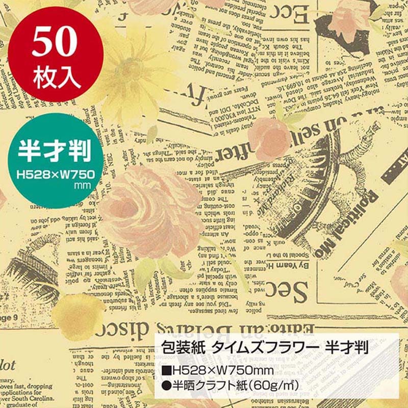 ササガワ 包装紙 半才判 タイムズフラワー 50枚 49-1519 1包(ご注文単位1包)【直送品】