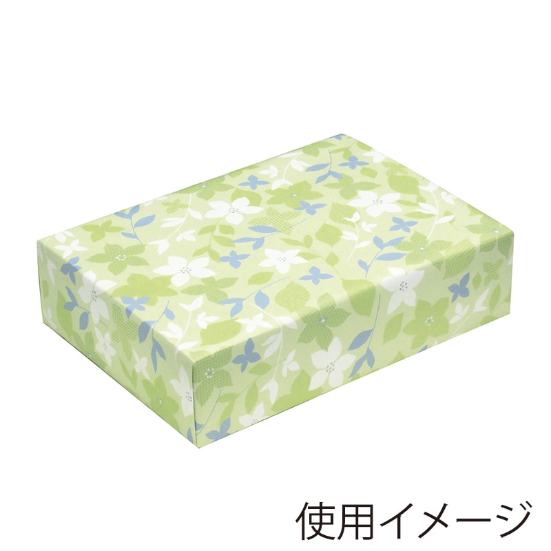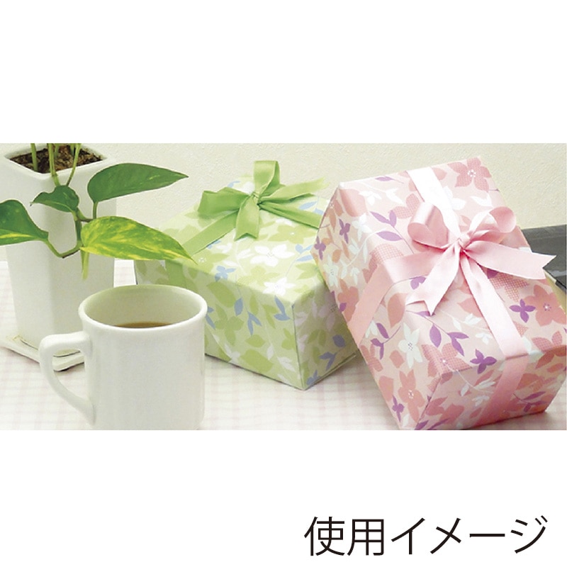 グリーンなどを基調に、季節感のない花のシルエットをモチーフにした花柄デザインの包装紙です。この包装紙ファイングロウ緑半才判は、年齢を問わず、色々なギフトシーンでご利用できます。サイズは縦530mm×横770mmで、表面がなめらかで光沢のあるコート紙を使用し、簡単でかわいい包み方ができます。ササガワホームページ内の「レッツラッピング」サイトではおしゃれなリボンやシールなどと組み合わせたオリジナルのラッピング方法などを掲載しております。包装に必要な目安サイズを調べる「包装紙の大きさチェッカー」もあります。1包50枚入りの三つ折り仕立てです。