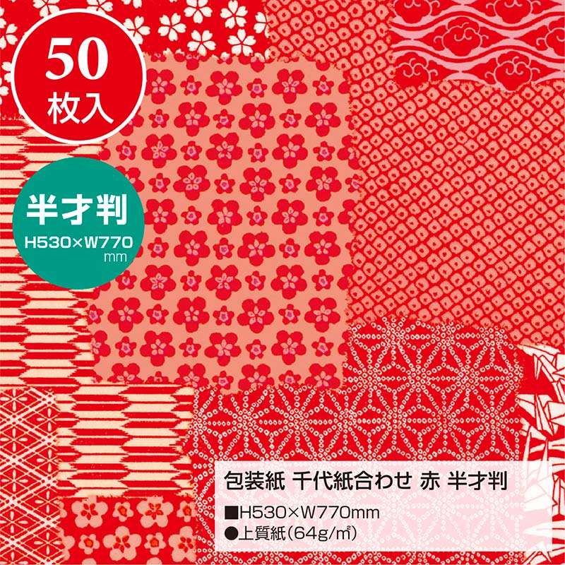 ササガワ 包装紙 千代紙合わせ 赤 半才判 49-1715 50枚 1包(ご注文単位1包)【直送品】