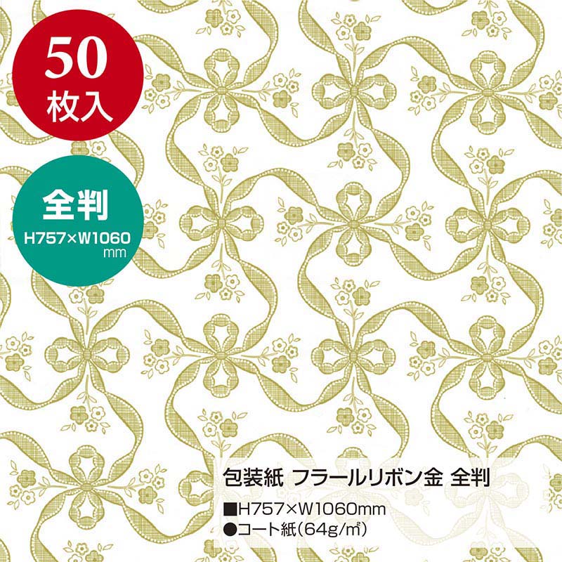 ササガワ 包装紙 全判 フラールリボン金 50枚 49-2800 1包(ご注文単位1包)【直送品】