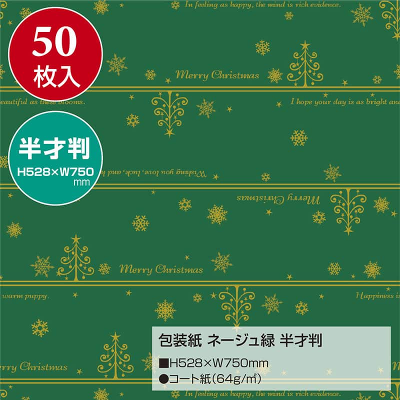 ササガワ クリスマス包装紙 半才判 ネージュ緑 49-3026 1包(ご注文単位1包)【直送品】