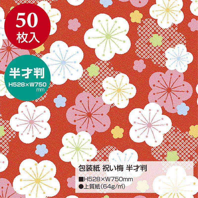 ササガワ 包装紙 祝い梅 半才判 49-1722 50枚 1包(ご注文単位1包)【直送品】