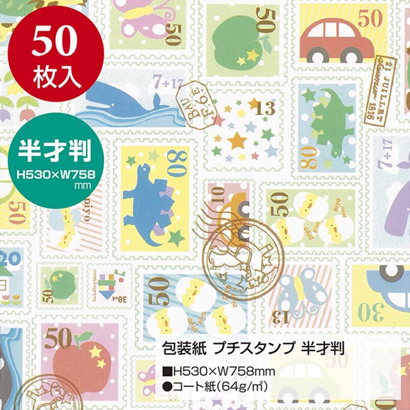 ササガワ 包装紙 半才判 プチスタンプ 50枚 49-1323 1包(ご注文単位1包)【直送品】