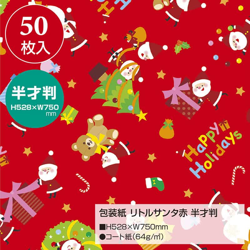 ササガワ 包装紙 半才判 50枚入 リトルサンタ 赤 49-3061 1包(ご注文単位1包)【直送品】