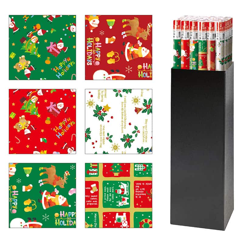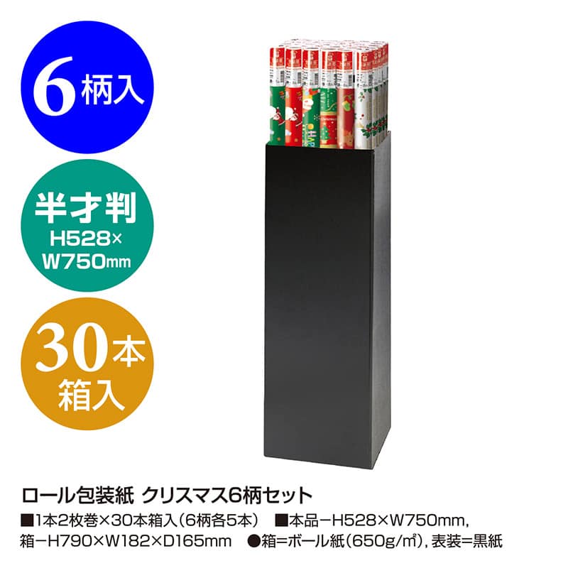 ササガワ 包装紙 半才判 2枚ロール クリスマス6柄セット 60枚入 35-1899 1本(ご注文単位30本)【直送品】