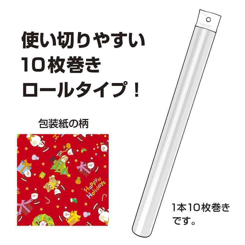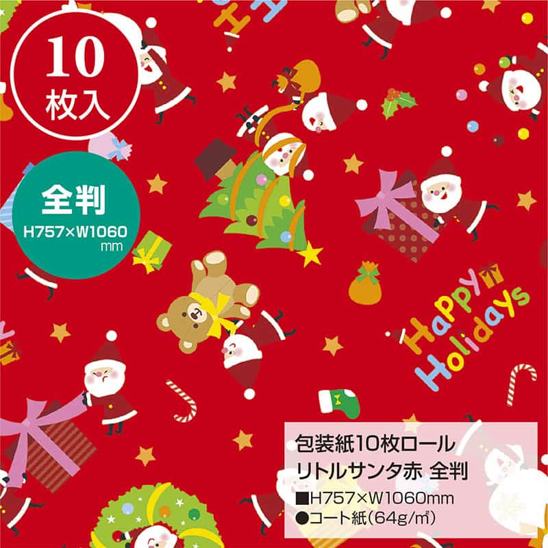 ササガワ 包装紙 全判 10枚ロール リトルサンタ 赤 49-4661 1本(ご注文単位1本)【直送品】