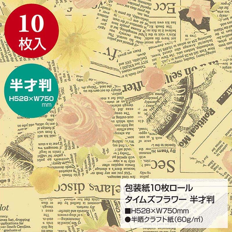 ササガワ 包装紙 半才判 タイムズフラワー 10枚巻き 49-7569 1本(ご注文単位1本)【直送品】