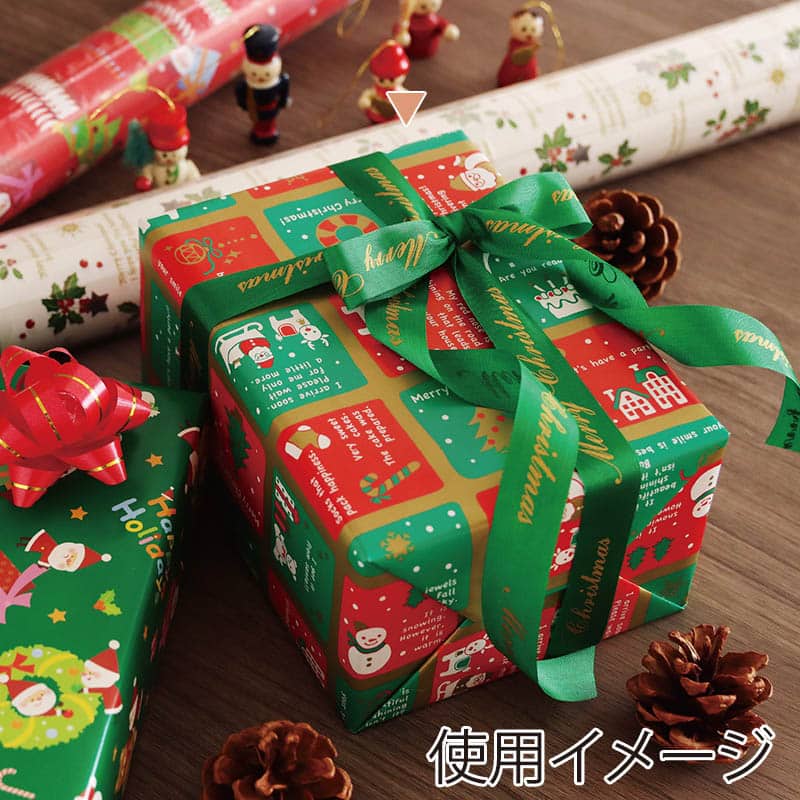 ササガワ 包装紙 半才判 10枚ロール リトルサンタ 緑 49-3662 1本(ご注文単位1本)【直送品】