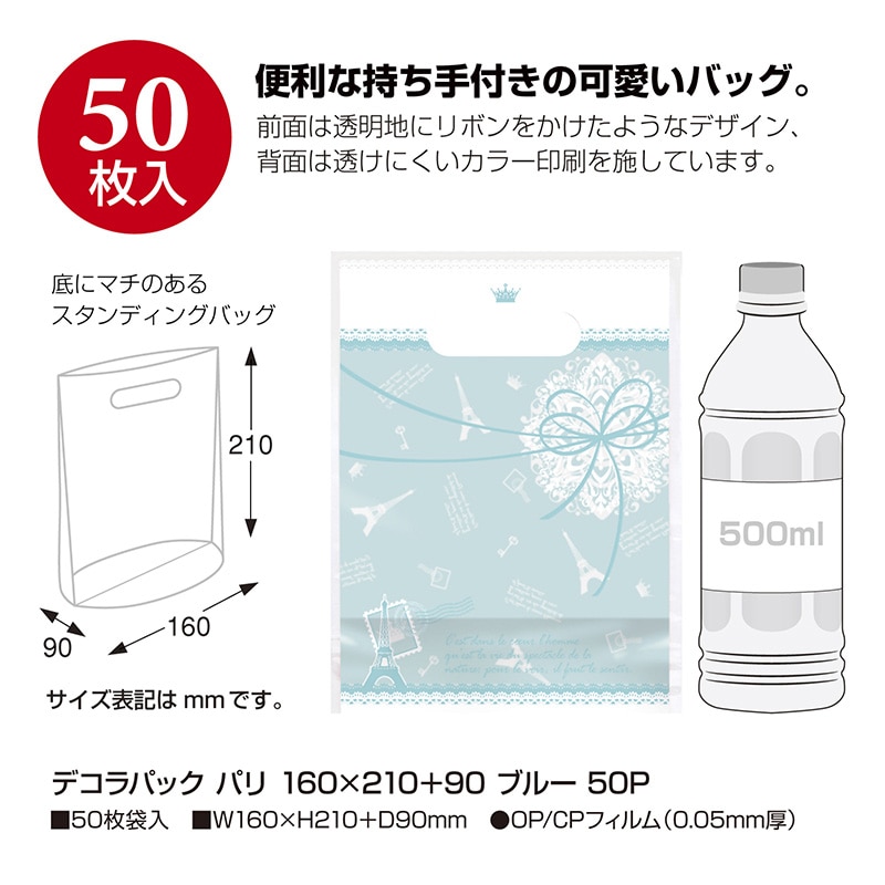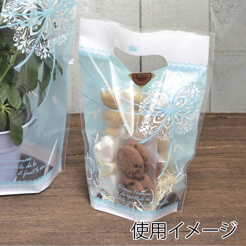 ササガワ 角底袋 デコラパックパリ 小 ブルー 50枚 35-3454 1包(ご注文単位1包)【直送品】