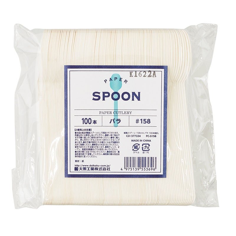 大黒工業 紙製スプーン バラ(個包装なし) 158mm PC-S158 100本/袋