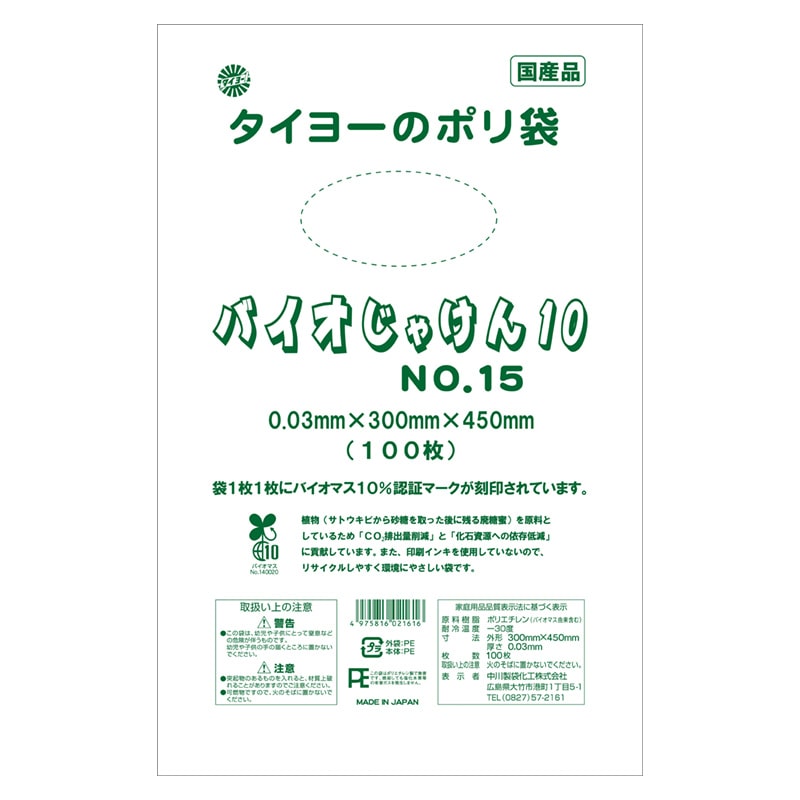 中川製袋化工 バイオ規格袋 バイオじゃけん10 03 No.15 100枚/袋(ご注文単位30袋)【直送品】
