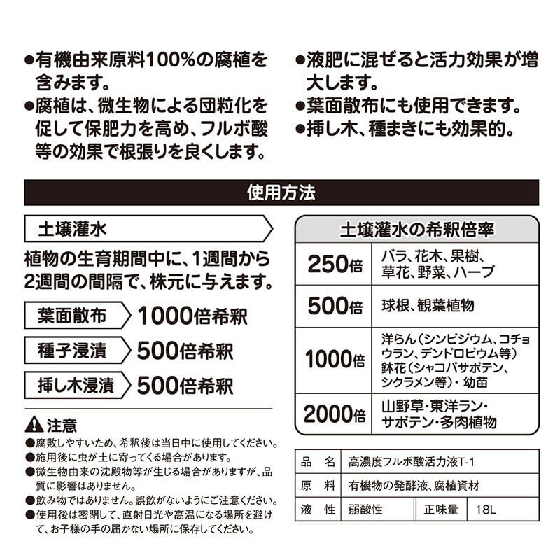 花ごころ 高濃度フルボ酸 微生物活力液 T-1 18L 6250 1箱(ご注文単位1箱)【直送品】